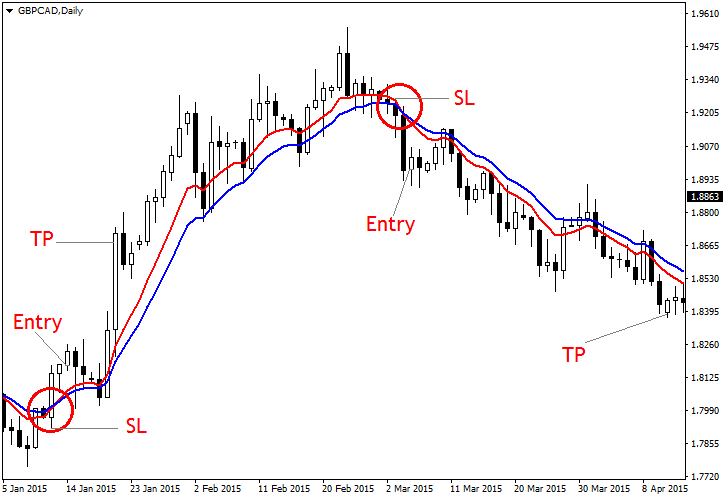- If another cross appears before the stop-loss or take-profit are triggered, close the position.