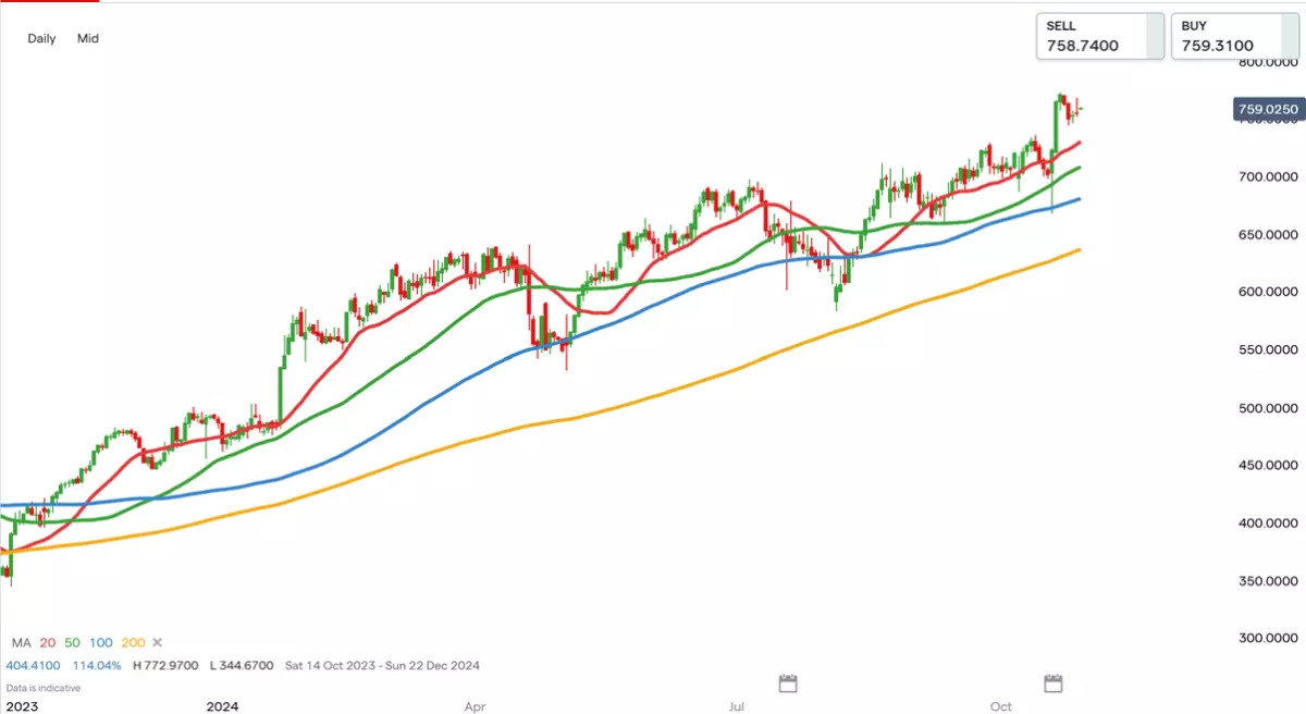 The relationship between price and MAs provides clear signals about trend direction. When prices consistently trade above a MA, it suggests an uptrend is in place.
